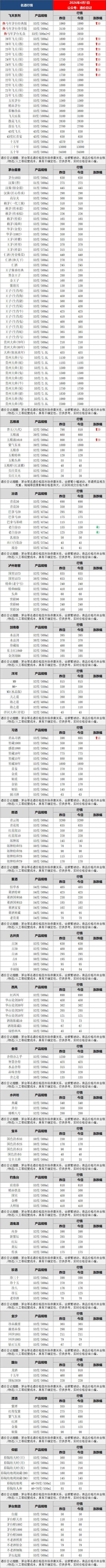 茅台系列酒价格最新动态更新:飞天系列,2023-2026年飞天、原箱散瓶持续上涨;生肖酒系列,马茅经典版上涨。