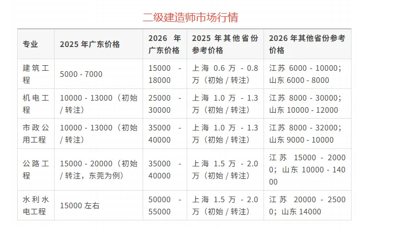 市场已经用价格投票了,2026年,二建是真的逆袭了。记住,选对专业,比你盲目考证,重要一万倍!