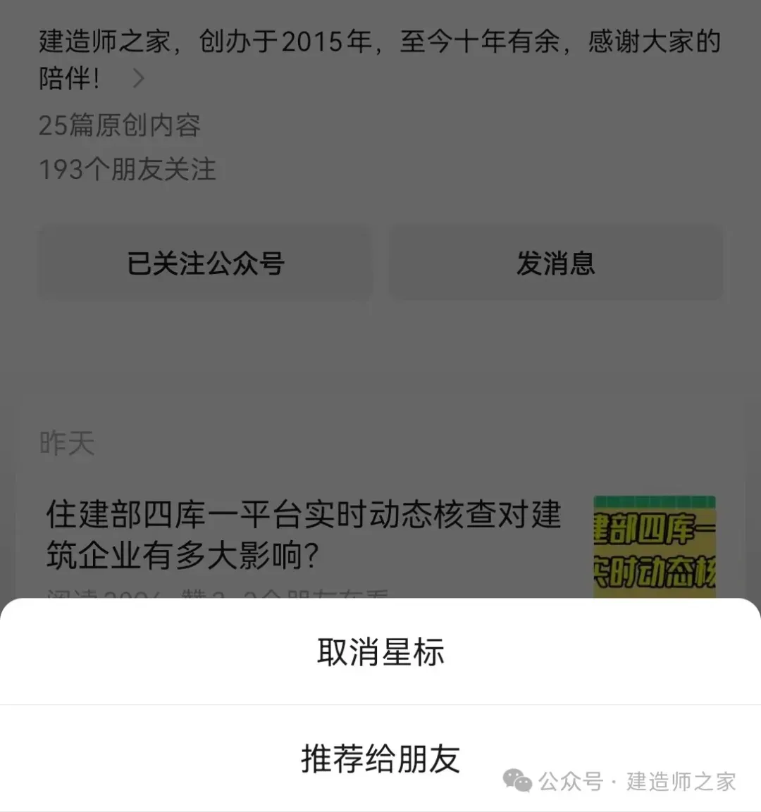 微信公众号又改版了!为防失联,请星标一下我吧!建造师之家不卖课、不中介...