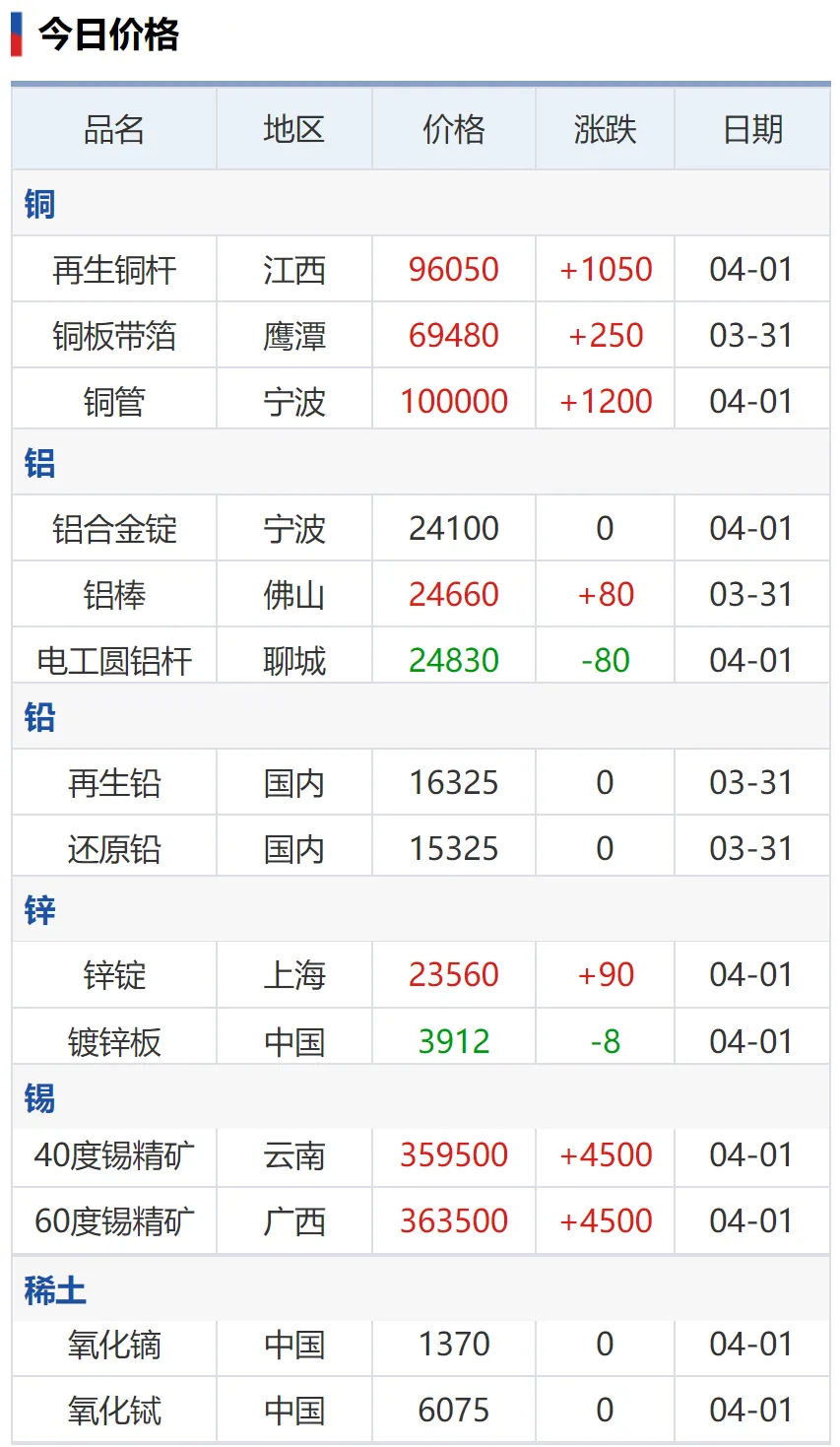 2026.4.1今日有色金属行情与动态