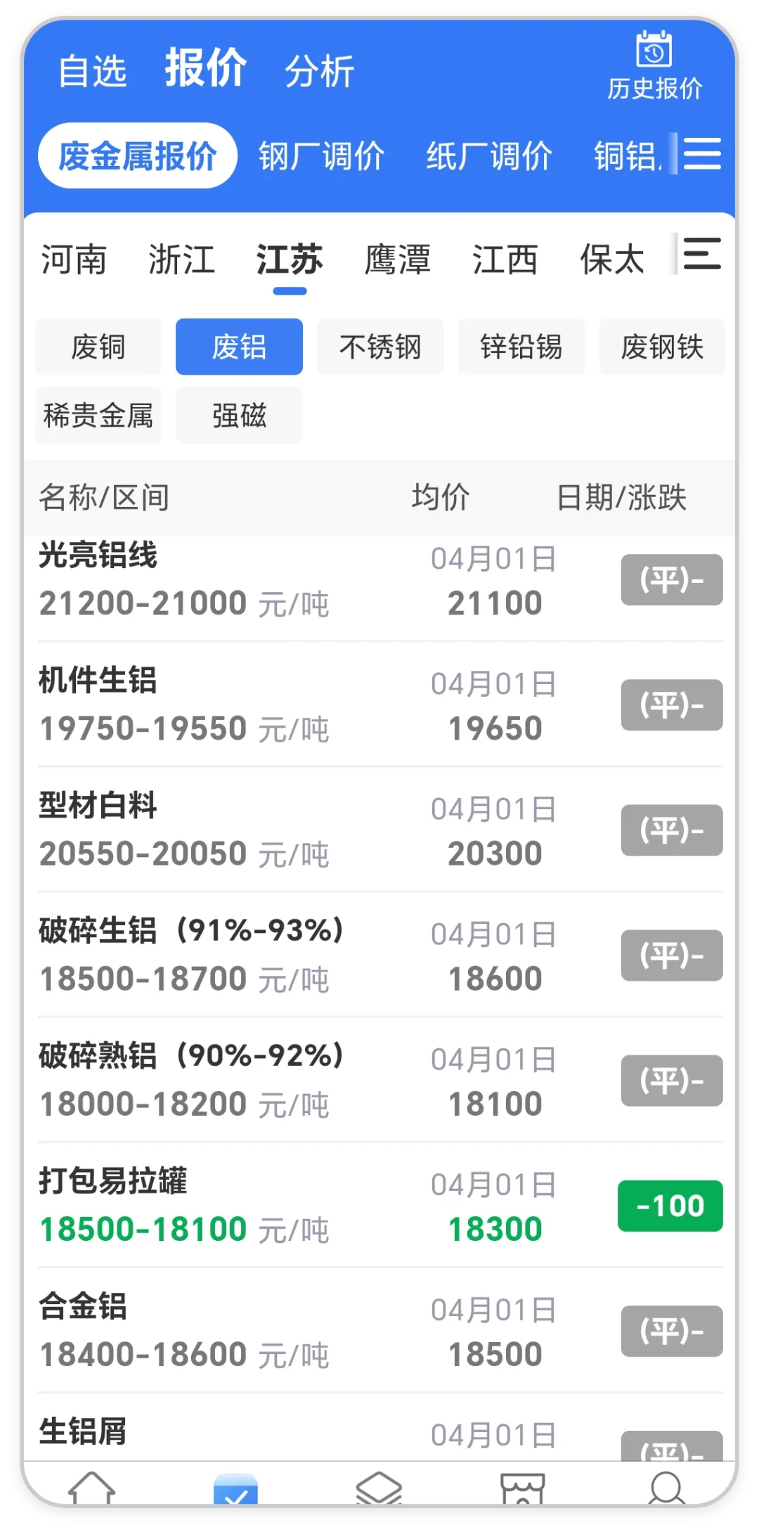 >废铝变化不大!全国废铝最新价格行情(4月1日)