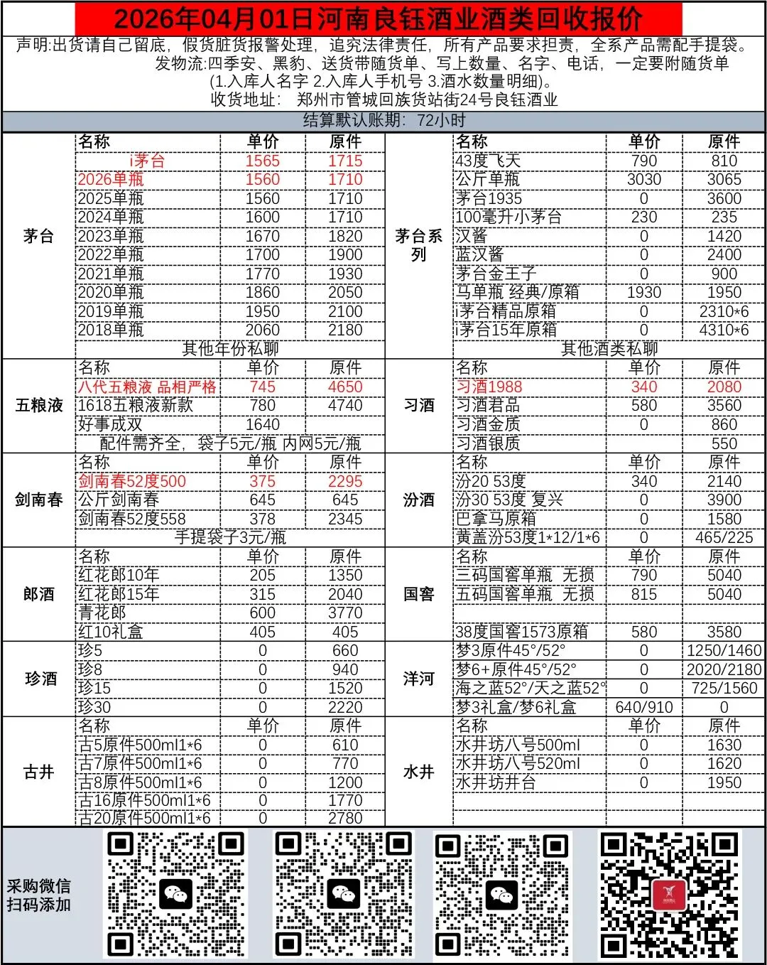 地址变更:收货地址: 郑州市金水区陇海快速路与货站街交叉口东北角 良钰酒业