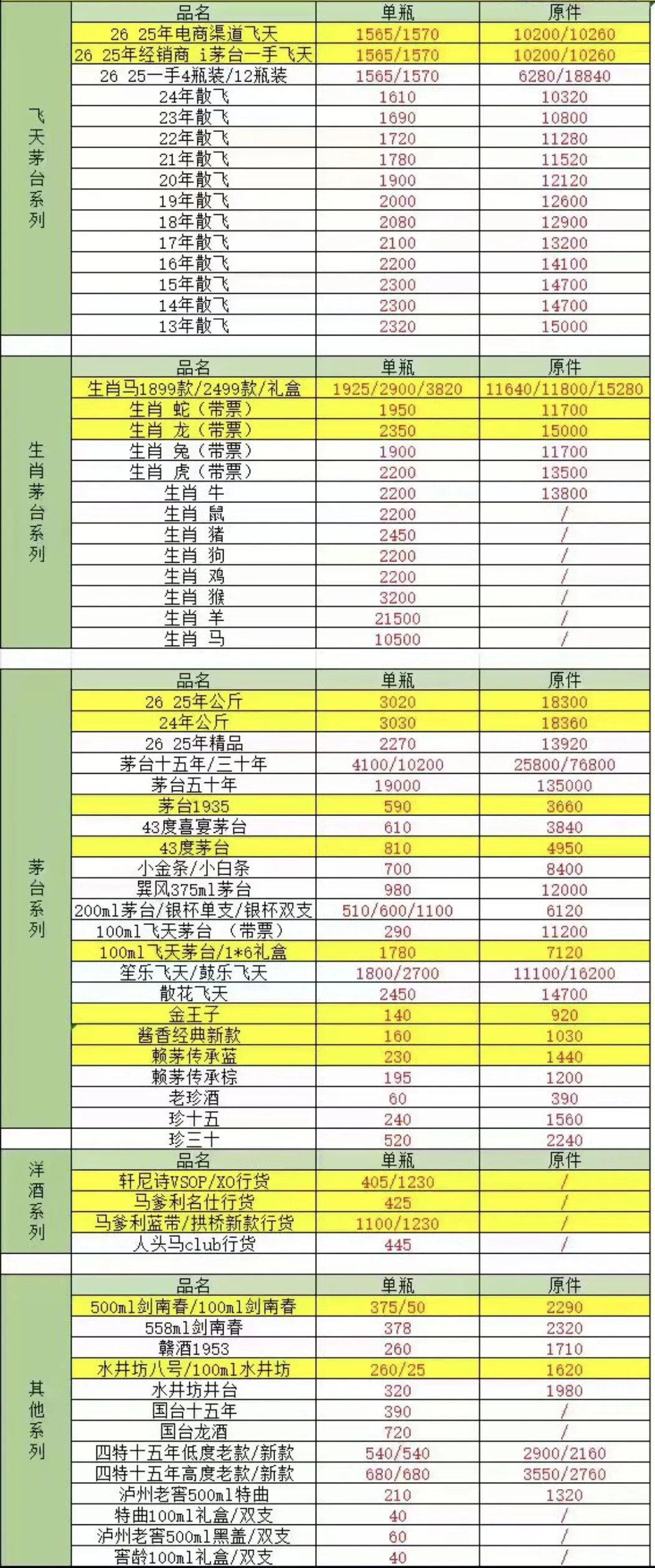 由于白酒飞天茅台价格存在实时变化、地区差异等原因,报价仅供参考。