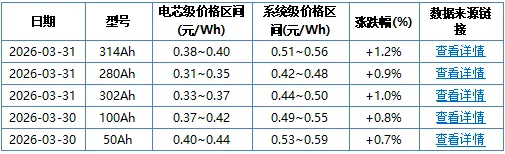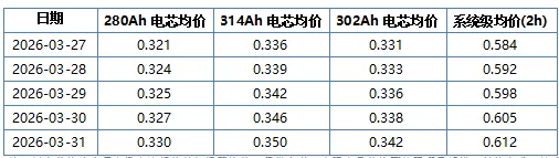 3. 储能电芯迎来新一轮涨价潮,2小时系统报价突破0.61元/Wh