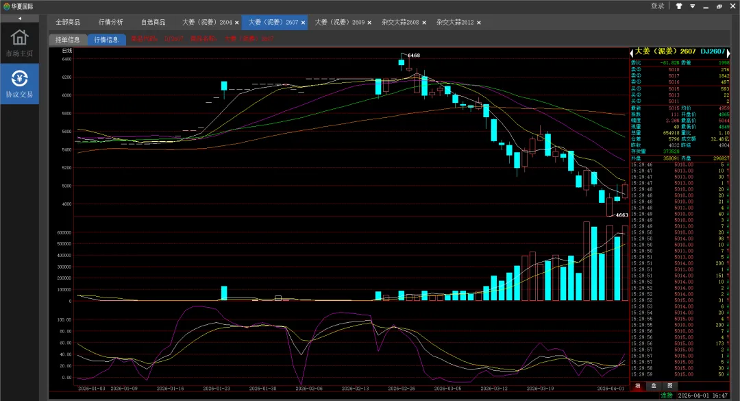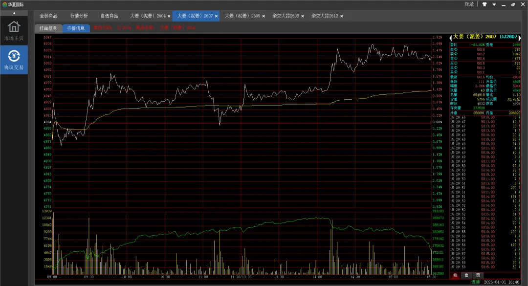 2607大姜(泥姜)合约库存量272628吨。成交654918吨,成交金额32.48亿,成交均价4959元,开盘价4865元,收盘价5015元,最低价4849元,最高价5044元,库存量同比上一交易日增加5796吨。