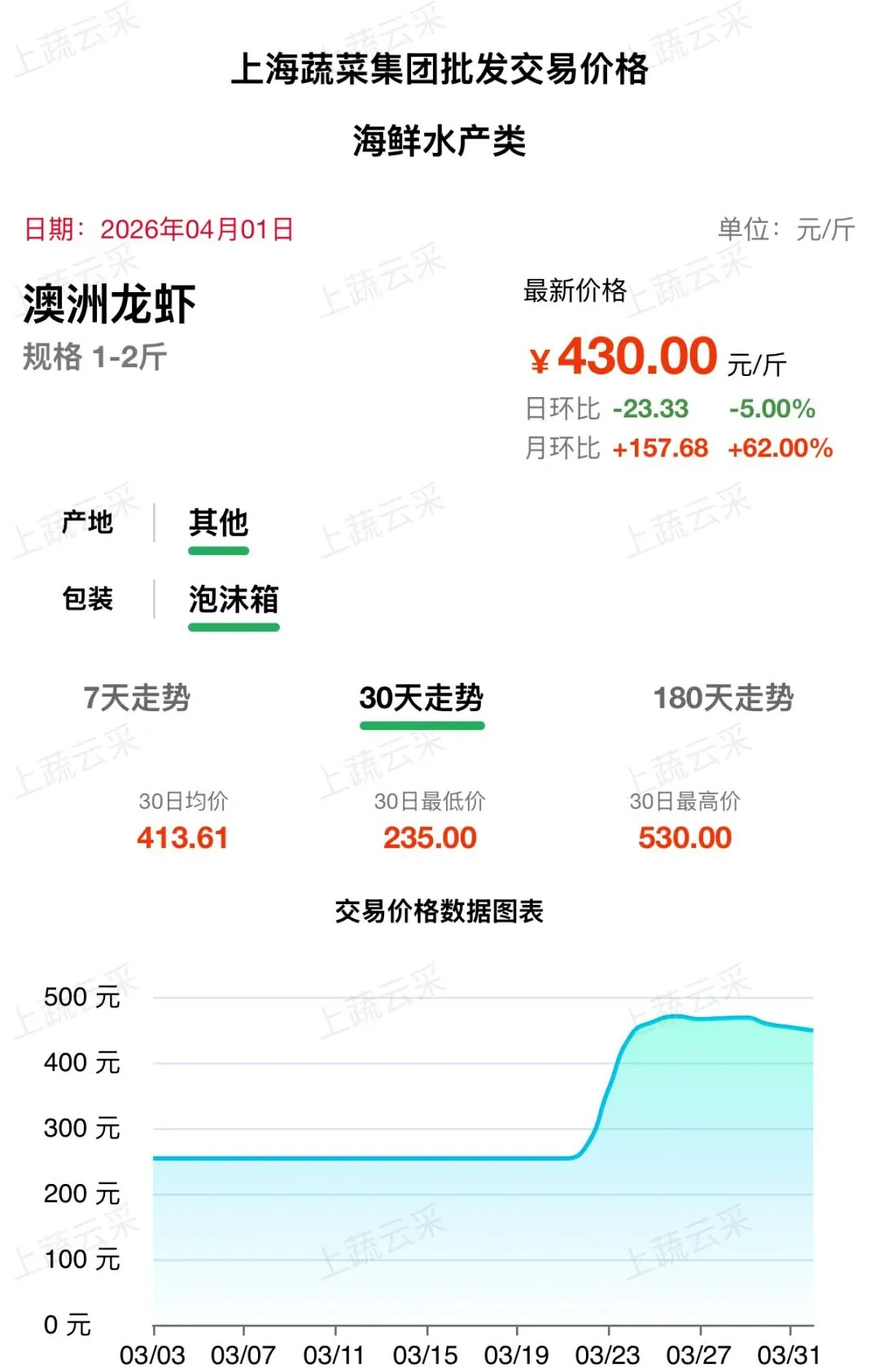 澳洲龙虾批发交易行情走势