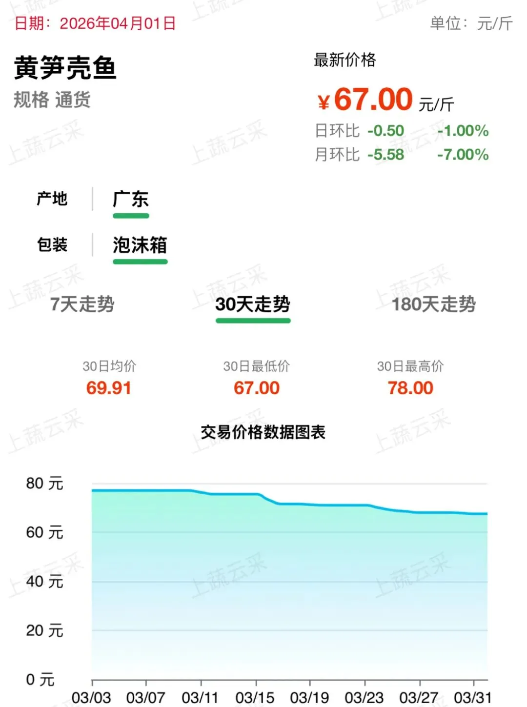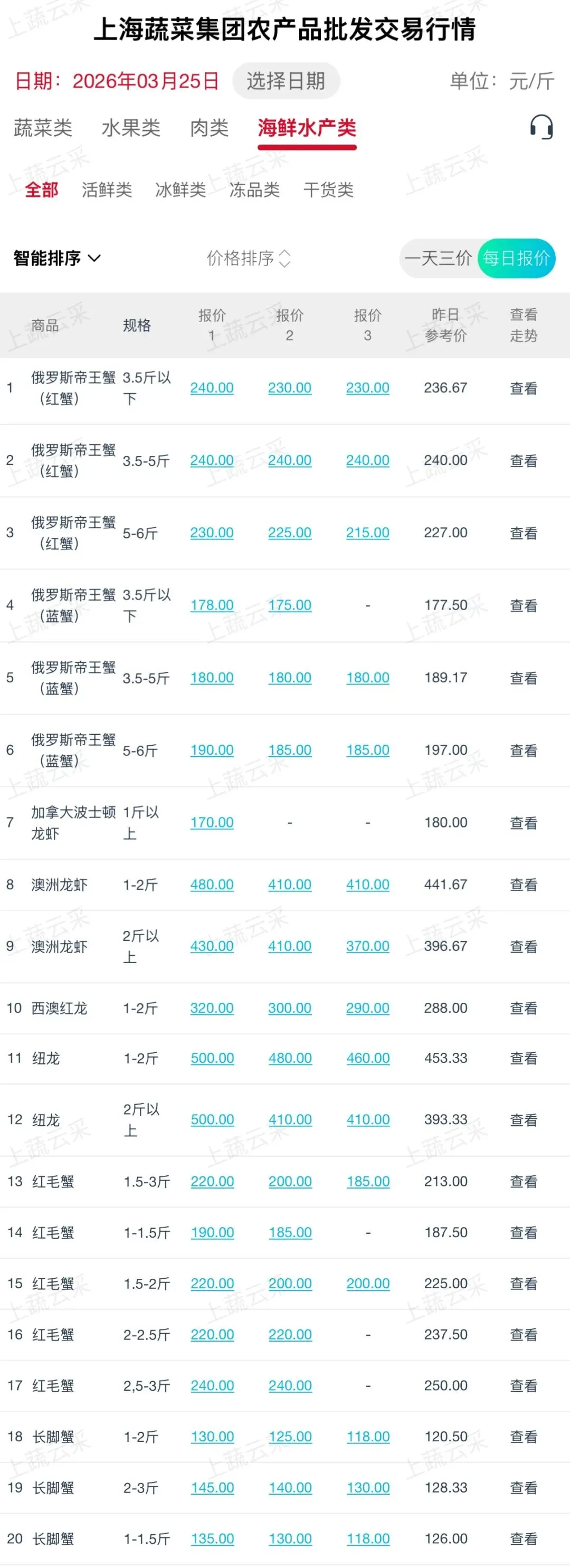 蔬菜、水果、肉、海鲜水产等更多品类交易行情
