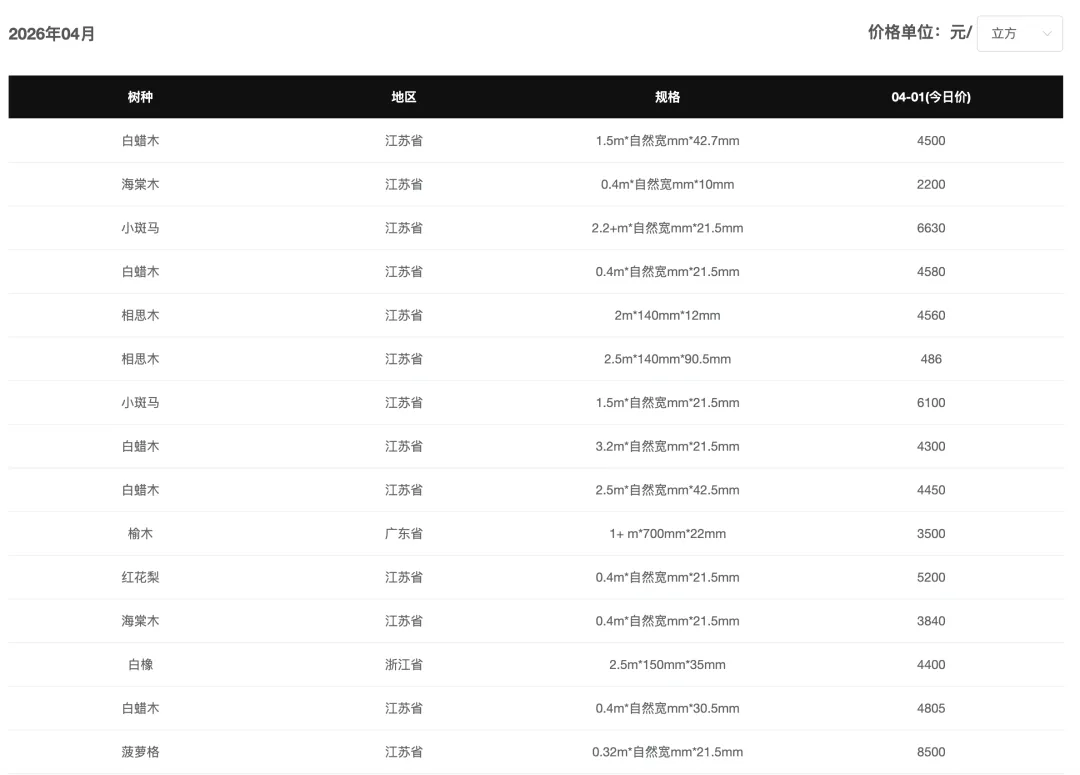 今日板材·硬杂木价格整体平稳。其中采木网平台合作报价商-辽宁地区客户欧洲白橡(长2米,宽20mm,厚18mm)报价在12000元/立方米。木材市场成交量不温不火,普遍“只买刚需不囤货”。