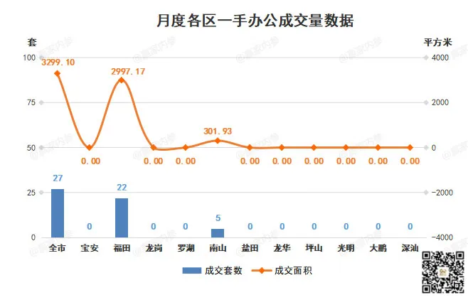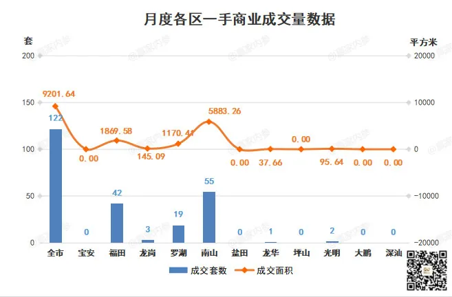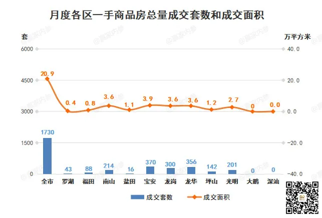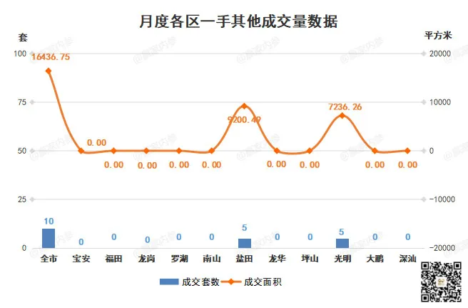 仅盐田区、光明区各成交5套,各成交面积9200.49㎡、7236.26㎡