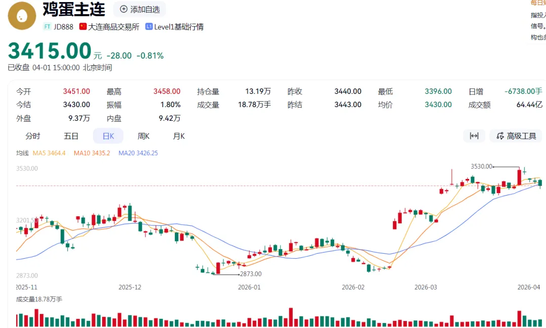 今日鸡蛋期货行情(2026-04-01,大商所)