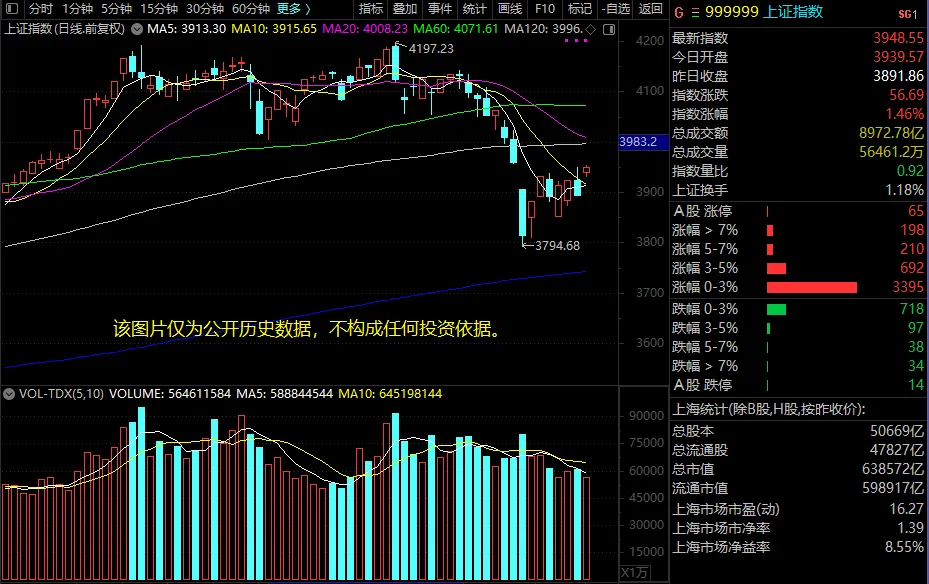 所以短期修复反弹还有空间,但弱后续量能持续不够,同时题材方面共振效果不好的话还是谨防冲高回落!这轮下探从低点反弹已经7个交易日,4000点上方有不少套牢盘,越往上压力越大!