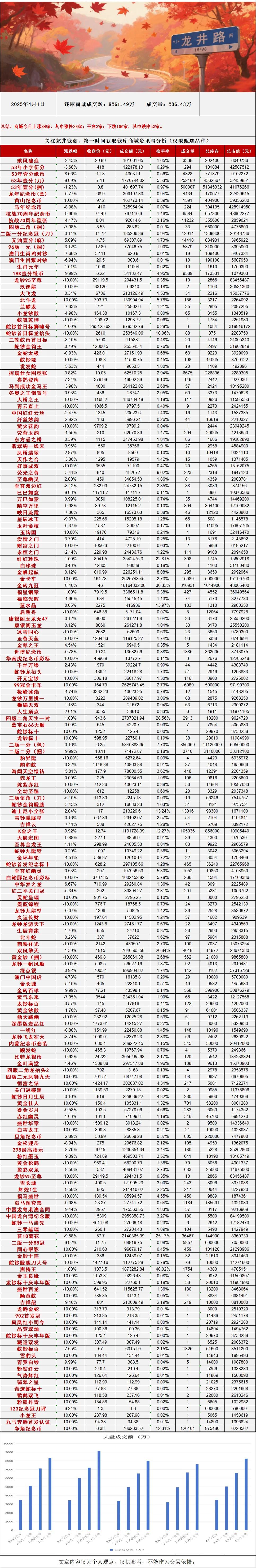 >龙井路:4月1日钱库商城行情播报