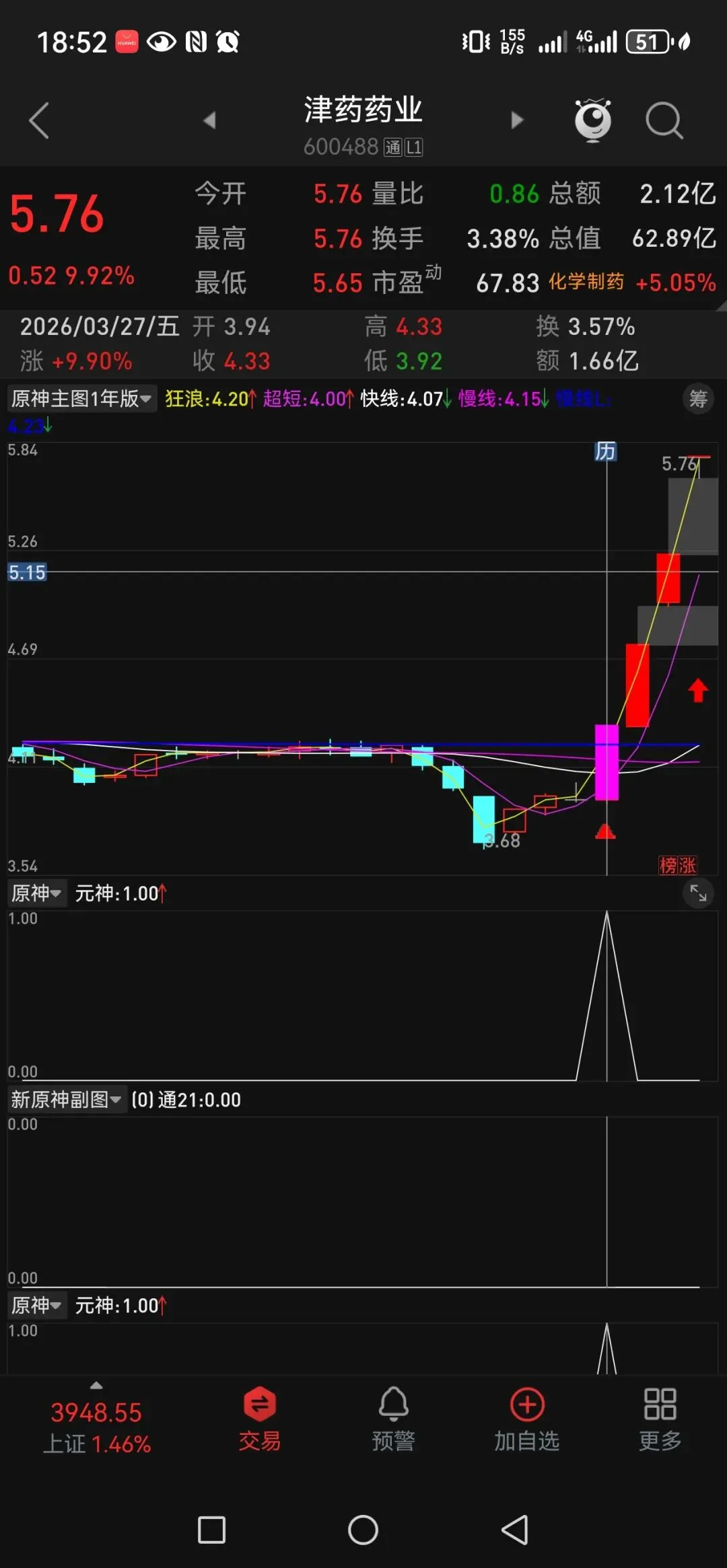 原神今天拿下市场唯一31板以上高标,津药药业。