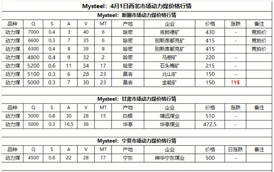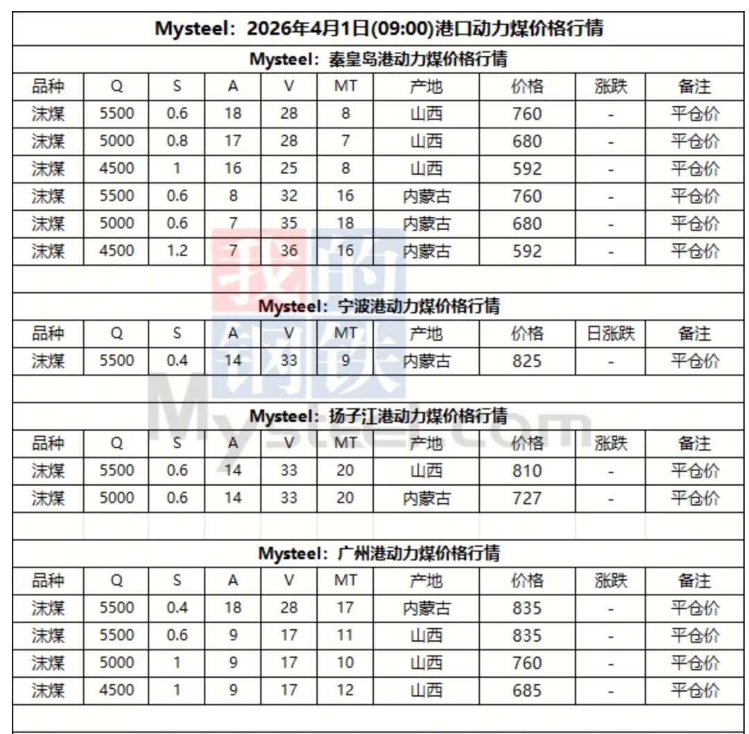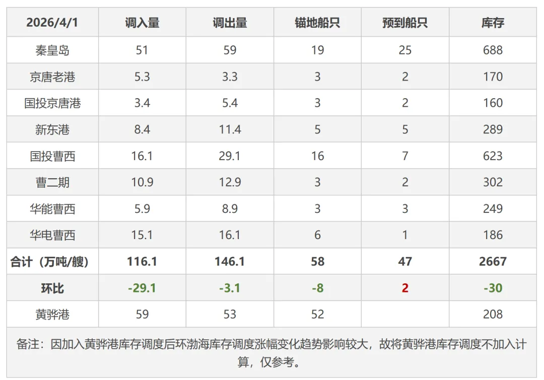 1日港口市场动力煤弱稳运行。港口库存高企,现货贸易商出货意愿较高,部分报价小幅下调。下游询货问价现象较少,报询盘差距仍存,实际成交较少。大秦线即日起开启为期30天的春季检修,港口调入或将有所减少,后市需持续关注港口去库速度和实际成交情况。