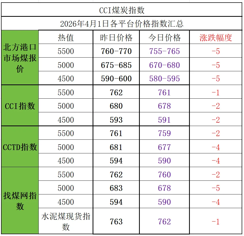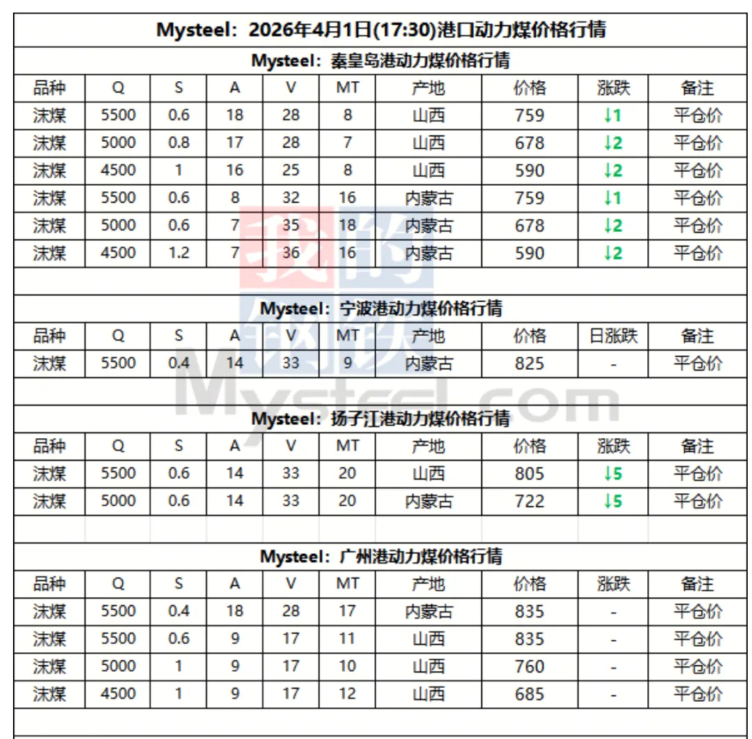 下游方面,当前目前大秦线集中检修临近、国内坑口煤价开始下跌,但终端采购积极性表现疲弱,市场交易热度退潮,整体采购增量相对有限,后续采购或仍以长协资源为主。天气方面,4月1日,江南、华南一带的降雨将短暂减弱,部分地区有小雨。
