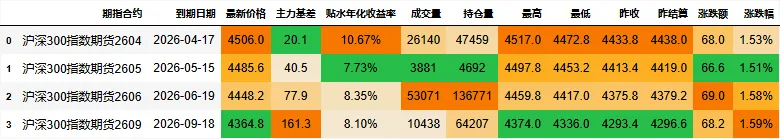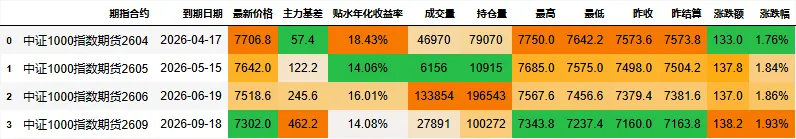 期指合约信息: