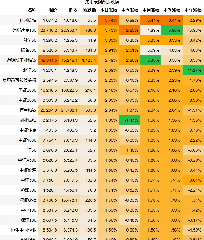 集思录等权指数涨幅:2.23%