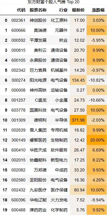 东方财富个股人气榜