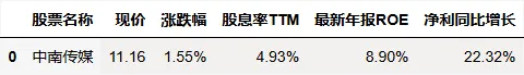 股息率个股筛选
