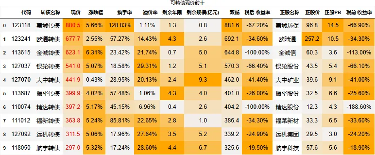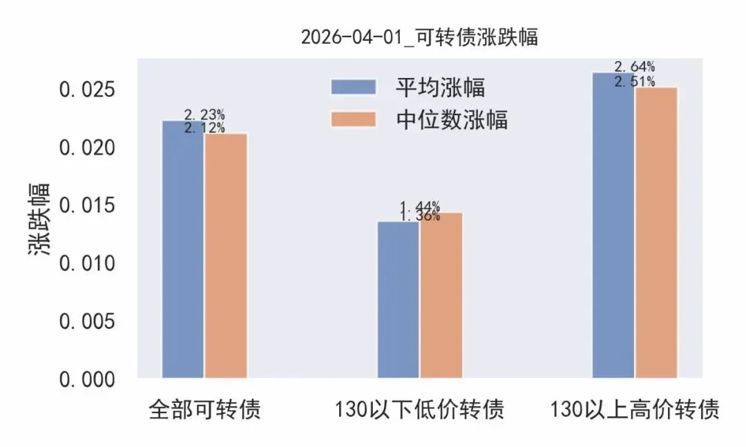 130以上高价转债涨幅中位值:2.51%