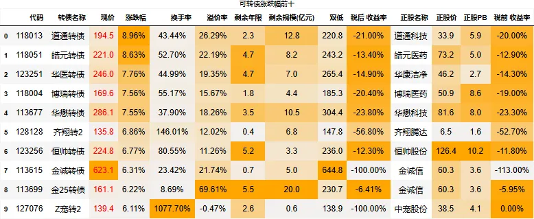 转债市场日内涨幅平均值:2.23%