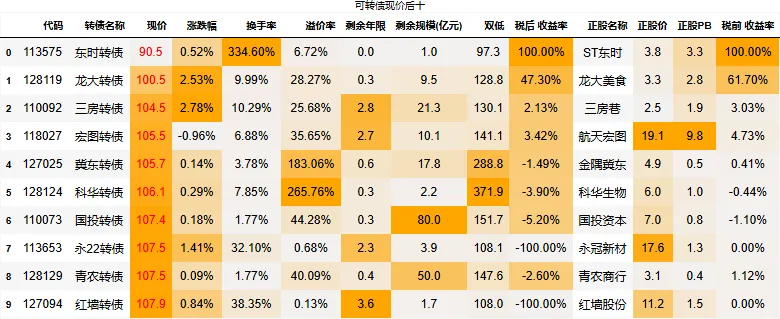 全市场剩下3只转债低于105