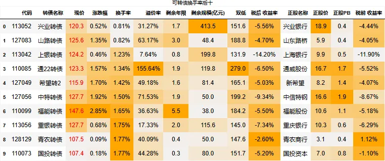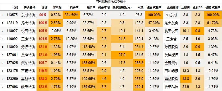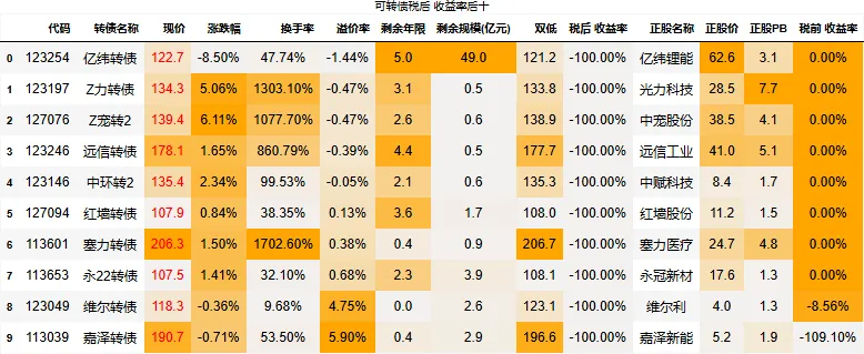 到期税后收益大于0的转债数量:4只