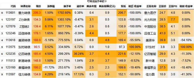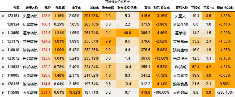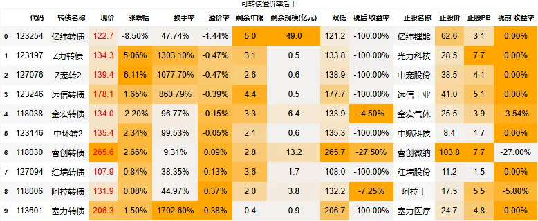 溢价率小于20的转债数量:85只