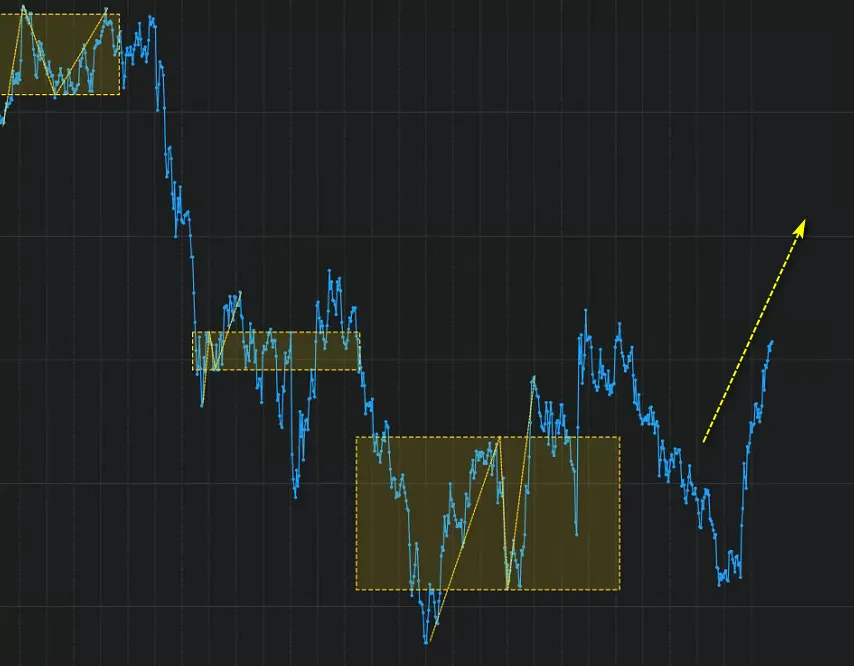 说明: 价格已从该平台跌破,目前处于下跌趋势中,当前价格约 1.1550-1.1560 附近,该平台构成强阻力位。