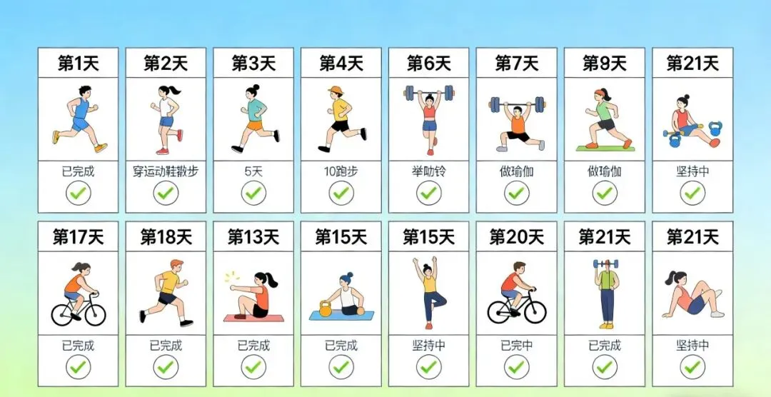 4. 哲学与周期:21天法则 心理学有个著名定律:一个习惯的养成或消除,需要连续坚持21天。 这背后也是人体细胞代谢与神经重塑的周期,暗合斐波那契的节律。