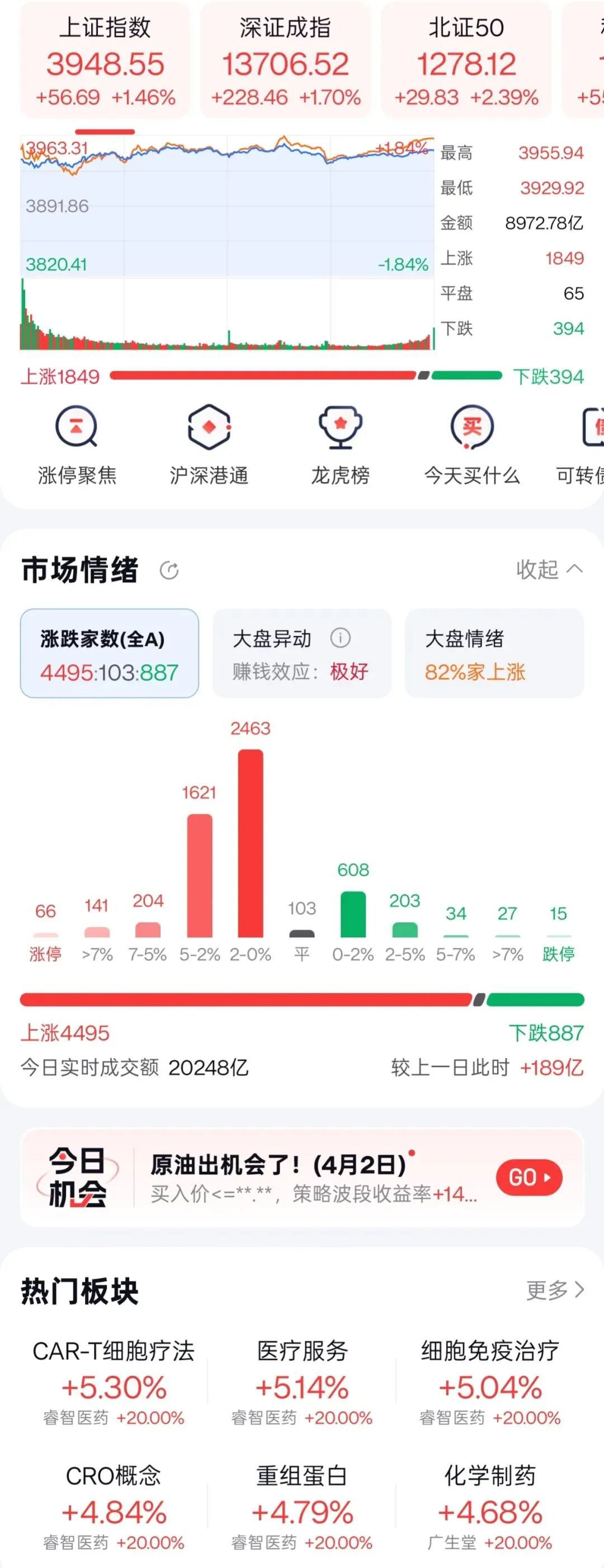 4月开门红:沪指收复3900,也没啥好说的,跌多了反弹大涨一天很好。
