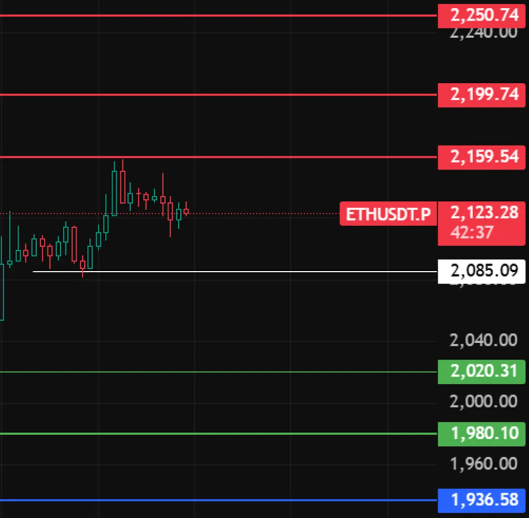 以太坊晚上看2085这个位置,回踩不破的话小级别继续往上,上面压力留意2160、2200、2250附近。