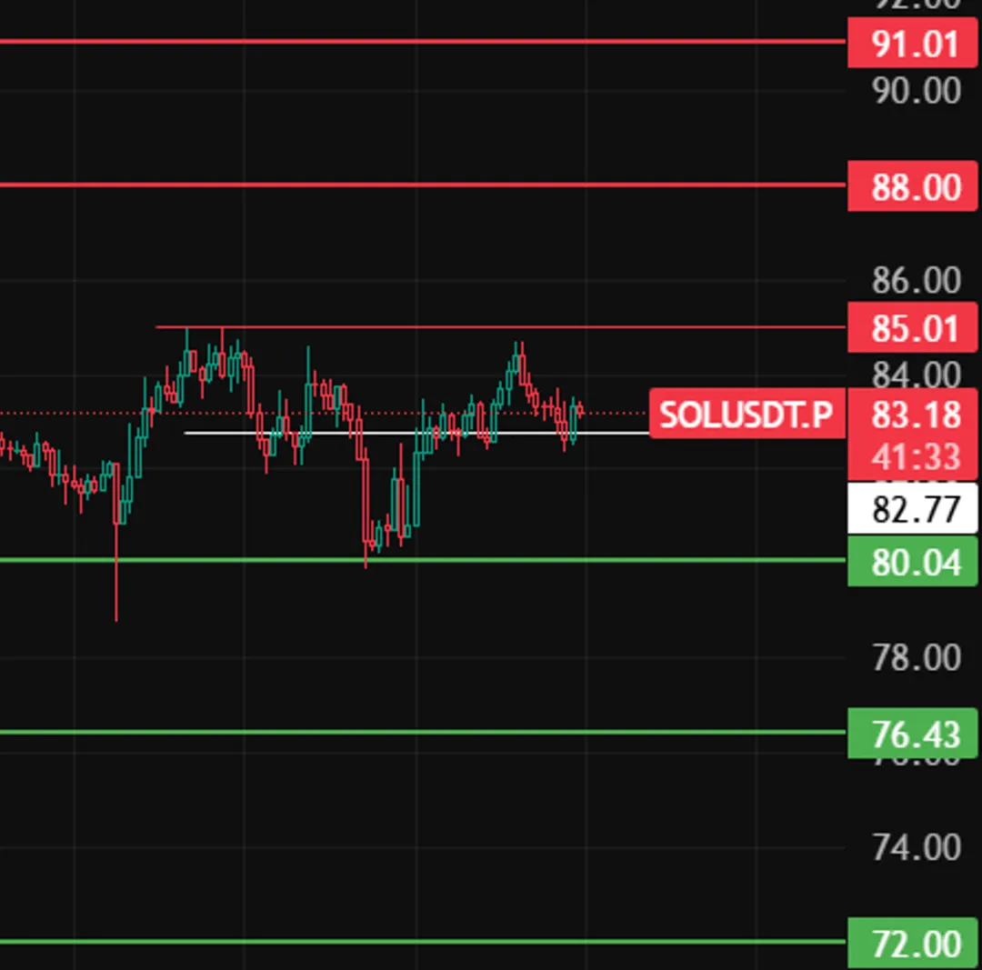 SOL晚上盯83这个位置,回踩不破的话4小时级别继续反弹,上面压力看85、91、93附近。
