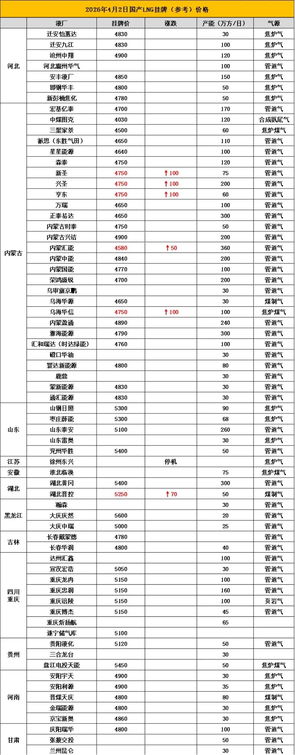 为了方便朋友们及时了解市场动态,掌握市场行情,把握市场机会。亿慧云天然气每天为大家提供行业新闻,国内LNG挂牌价格,本价格信息只做参考,具体提货价格请与工厂销售联系。(当天调价见底下留言)