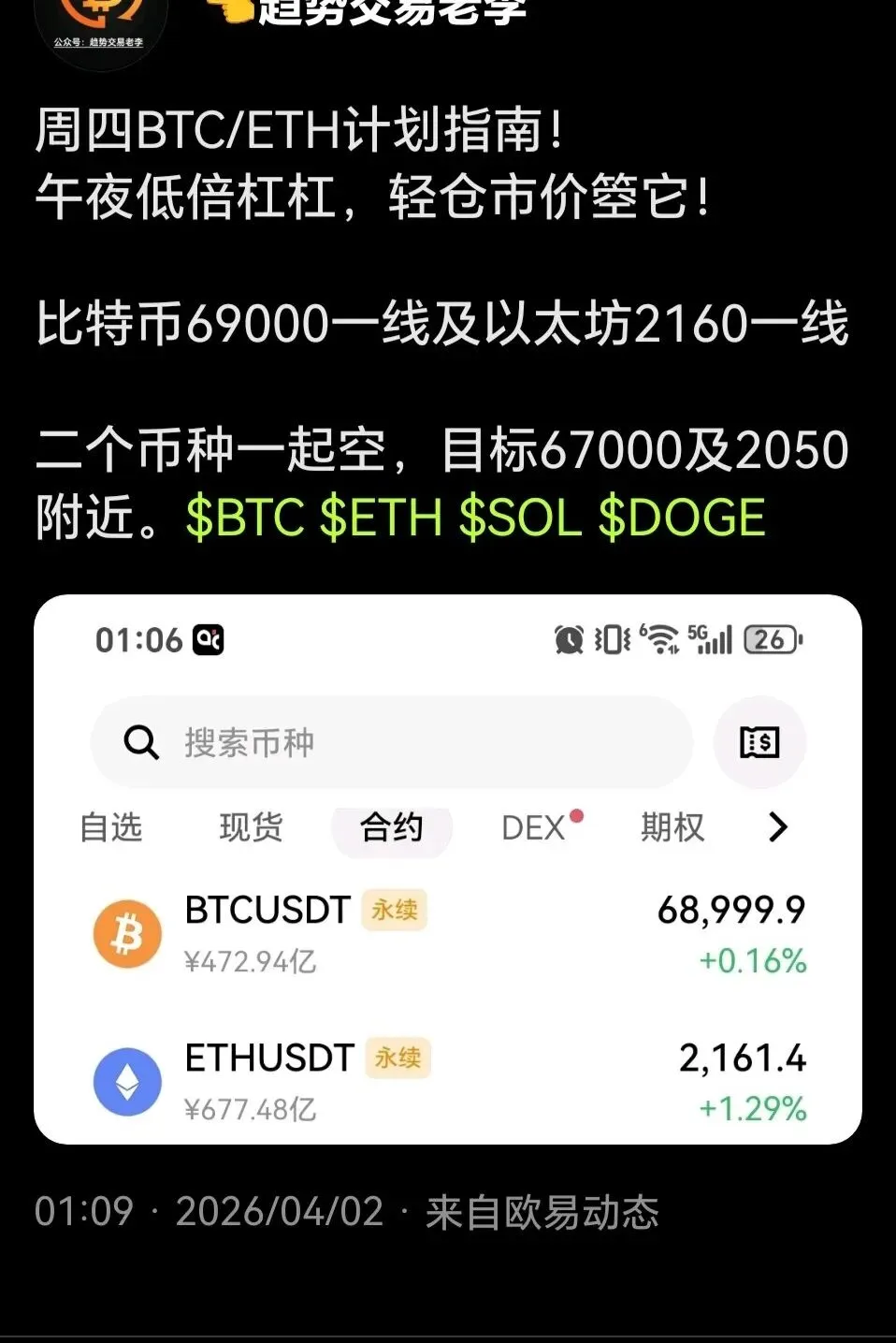 周四凌晨继续公开分享69000一线空单!