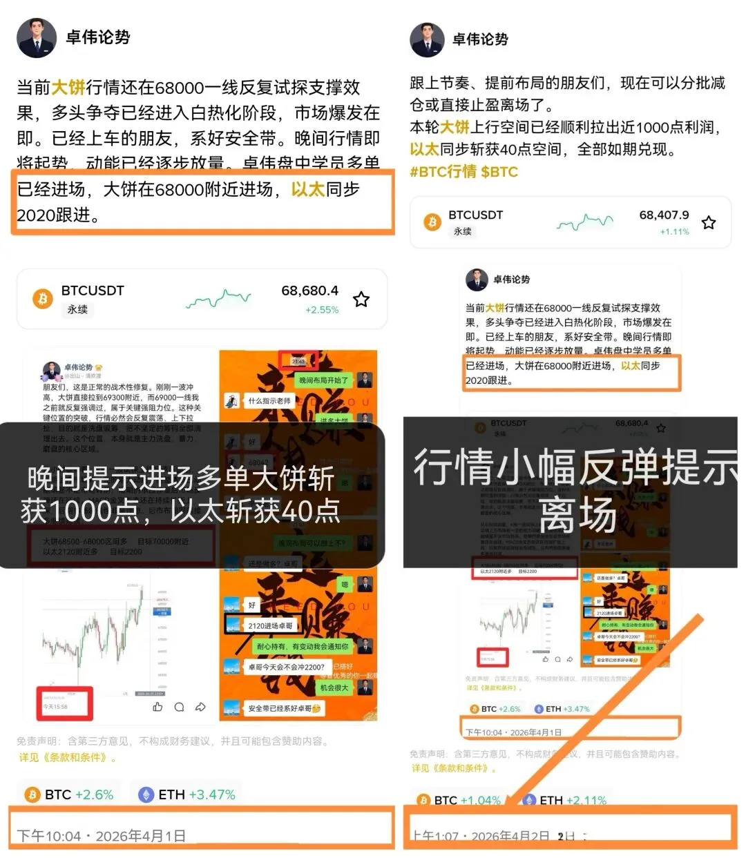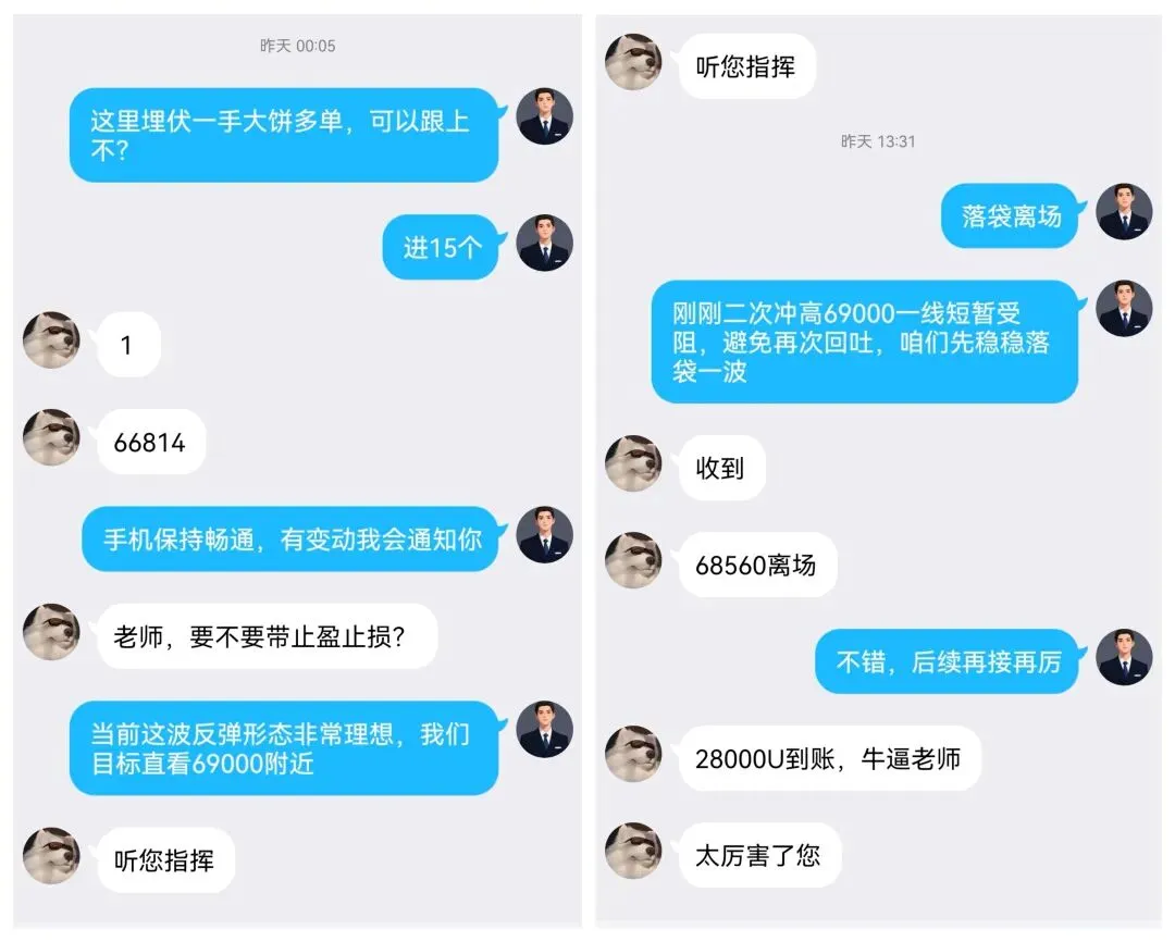 盘中布局,午夜阶段多单大饼在66814进场,以太同步在2064进场。成功在午间收网大饼斩获1772点空间,以太71点空间。晚间再度进场多单,大饼在68000附近进场,以太在2120进场,一波小幅拉伸大饼成功斩获1000点空间,以太同步斩获40点空间。