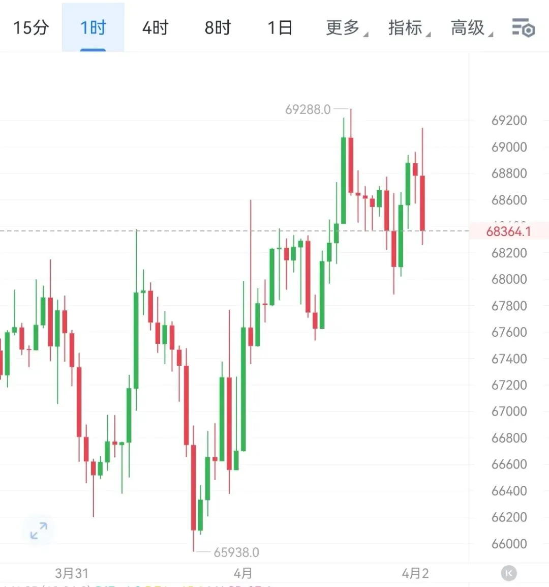 当前行情再度承压回落,此前一波小幅拉升后,多头明显遇阻回落,短期上涨延续性明显不足。四小时级别来看,K线试探上轨压力后受阻回落,说明市场短期需要回踩修复。KDJ三线逐步向死叉靠拢,空头动能开始回暖,后市回踩需求进一步增强。小时级别上,行情从上轨位置连续收阴下行,空头结构稳步放量,下探趋势延续。MACD顶背离后死叉持续放量,短期空头动能保持充分。后市布局先抓一波短空。大饼68800-69200区间空 目标67500
