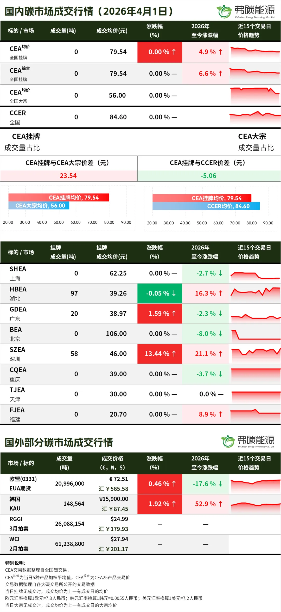 >碳市行情26.4.1 | CEA无挂牌成交...
