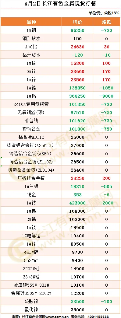 4月2日金属行情:仅铝铅小幅泛红,金属整体小绿,铜锡镍压力位窄幅震荡,期钢走弱!附金属早盘参考!