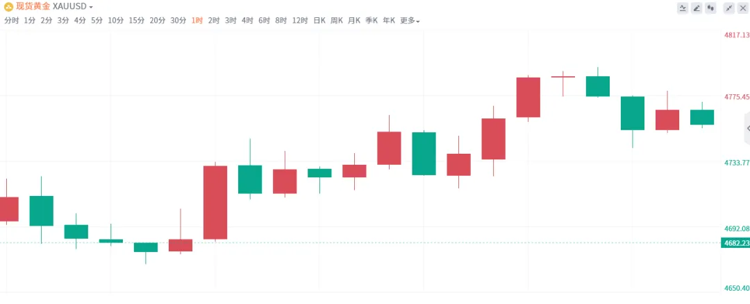 ▲白银方面:因美元冲高受阻有所回落支撑白银,昨日白银跟随黄金回调站稳后有所震荡上扬,盘中自低点73.74震荡上行至76.11附近,尾盘有所回落而小幅收跌;日内开盘白银小幅震荡回调修整;技术面看,白银维持震荡上涨走势概率大,短线来看白银将继续震荡上行,策略上偏向于顺势看上涨。白银开盘于75.14,最高触及76.11,最低探至73.74,收于75.05。黄金技术面分析:技术面来看,震荡偏强格局明确但遇阻信号凸显。日线级别,金价依托短期均线震荡上行,多次回踩4680美元关键支撑后企稳,呈现阶梯式抬升态势,但在4800美元附近遭遇强阻力。MACD指标维持红柱运行,多头动能虽未完全衰减,但红柱幅度逐步收窄;RSI指标接近超买区间,上攻动能有所不足。4小时级别,布林带开口向上,金价沿中轨震荡上行,但上轨4800美元附近压制明显,多次冲高均遇阻回落,未能形成有效突破,震荡区间逐步收窄,多空博弈进一步加剧。黄金1小时级别走势偏弱,与整体震荡偏强格局形成短期分化。金价跌破短期均线支撑,呈小幅下行态势,MACD指标红柱持续缩减,逐步向零轴靠近,空头动能逐步释放。RSI指标回落至中性偏弱区间,上攻动能不足,布林带走势偏下移,金价沿中轨下方运行,短期回调压力显现,需警惕进一步下探支撑位。