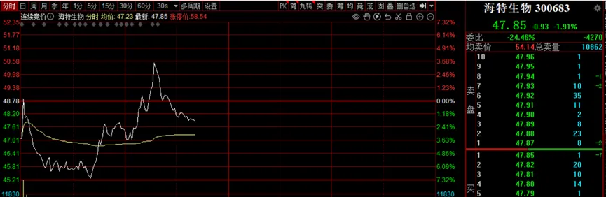 今天的创新药、减肥药开盘弱转强,但是,能否强到收盘,也要画一个问号。大家看看*海特生物的走势,假设你昨天收盘的时候已经持有了,今天你会怎么交易?是赚还是亏?
