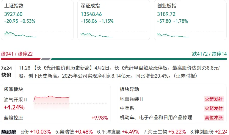 今日(2026年4月2日上午收盘)上证指数行情如下: