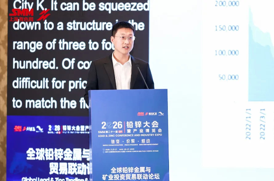 2026 SMM(第二十一届)铅锌大会暨产业博览会-全球铅锌金属与矿业投资贸易联动论坛上,三水实业有限公司铅锌负责人 周小岩围绕“锌锭进出口市场行情与关键驱动因素”的话题展开分享。