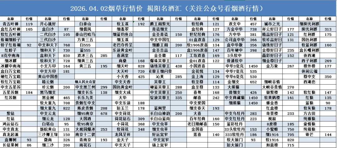 次新飞天上涨!4月2日酒水价格行情...…