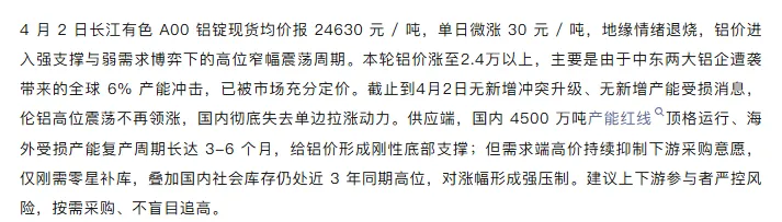 铝价行情分析:2026年04月02日
