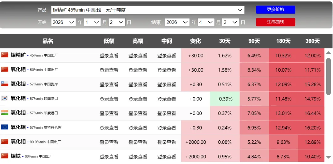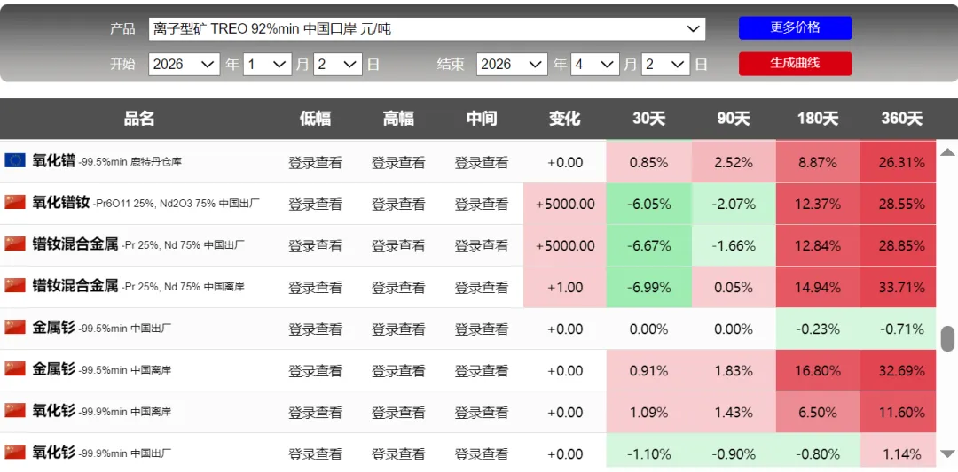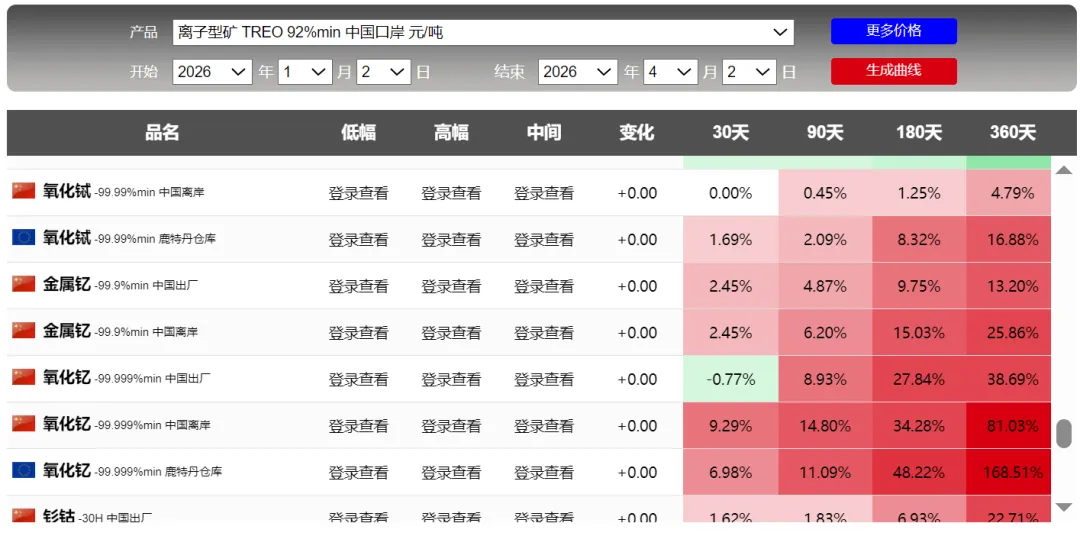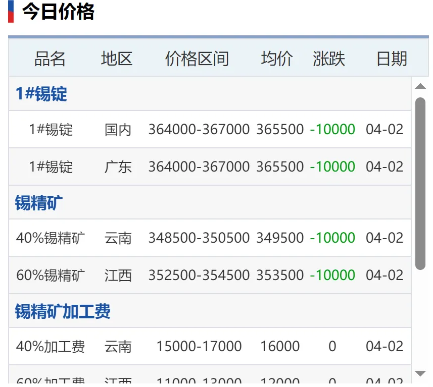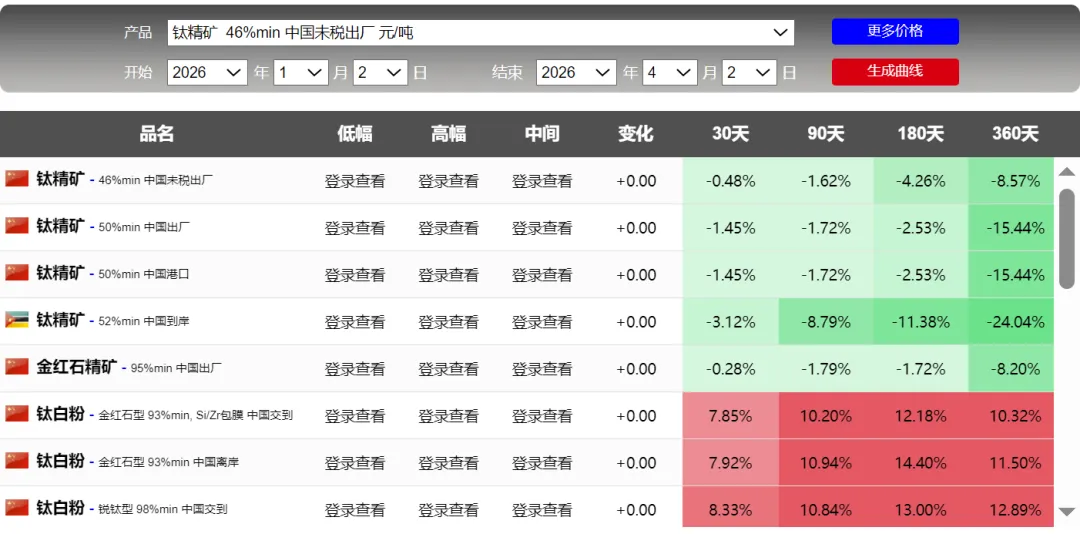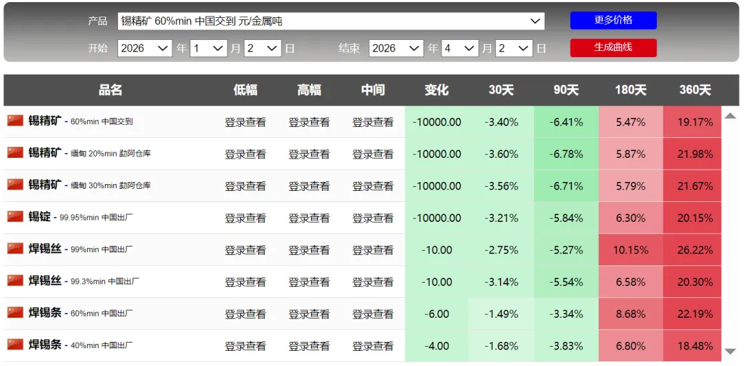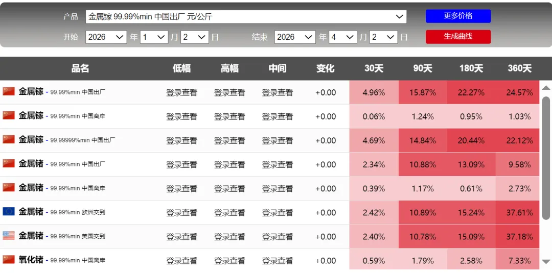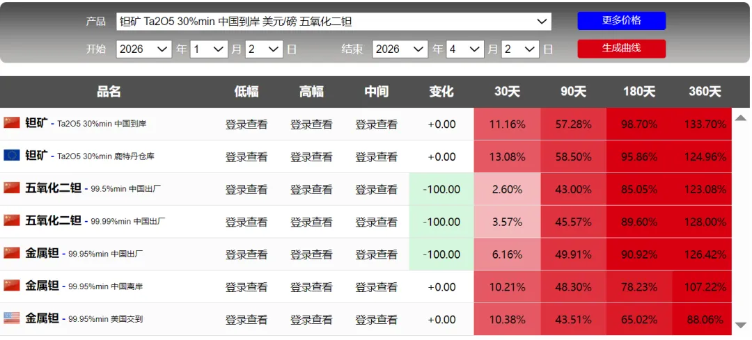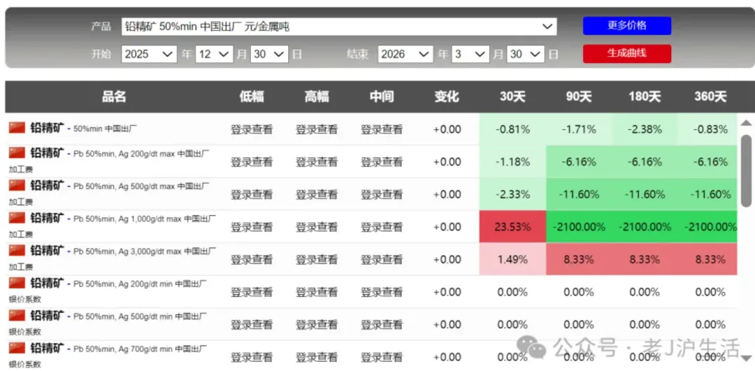 锡,无法说啊,也不是预测,金属具有周期性,价格却来回波动。特别是铅,前2天并没有多大涨幅,但今天显示:90天却是4200%,难道这个短期涨幅巨大吗?具体看截图刚开始关注钛,根据截图,也是一年周期的顶部。可能买机会上涨,持续关注吧额外关注了稀土氧化钇,钇是还没有被管制的,但稀土专门的企业。。可以自行了解吧,这里不多说了。附上一张前天的截图,2天的时间差,90天的涨幅数据:铅精矿涨幅6000%的差距,啥情况啊,网站调整数据了吗?截图看并没有这么大的差距。数据来源于网络,如果侵犯您的权益,请联系作者删除。