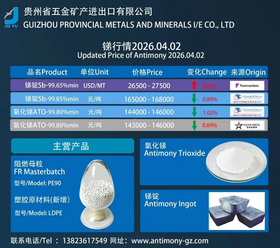 日讯 | 国内外锑锭行情2026.04.02