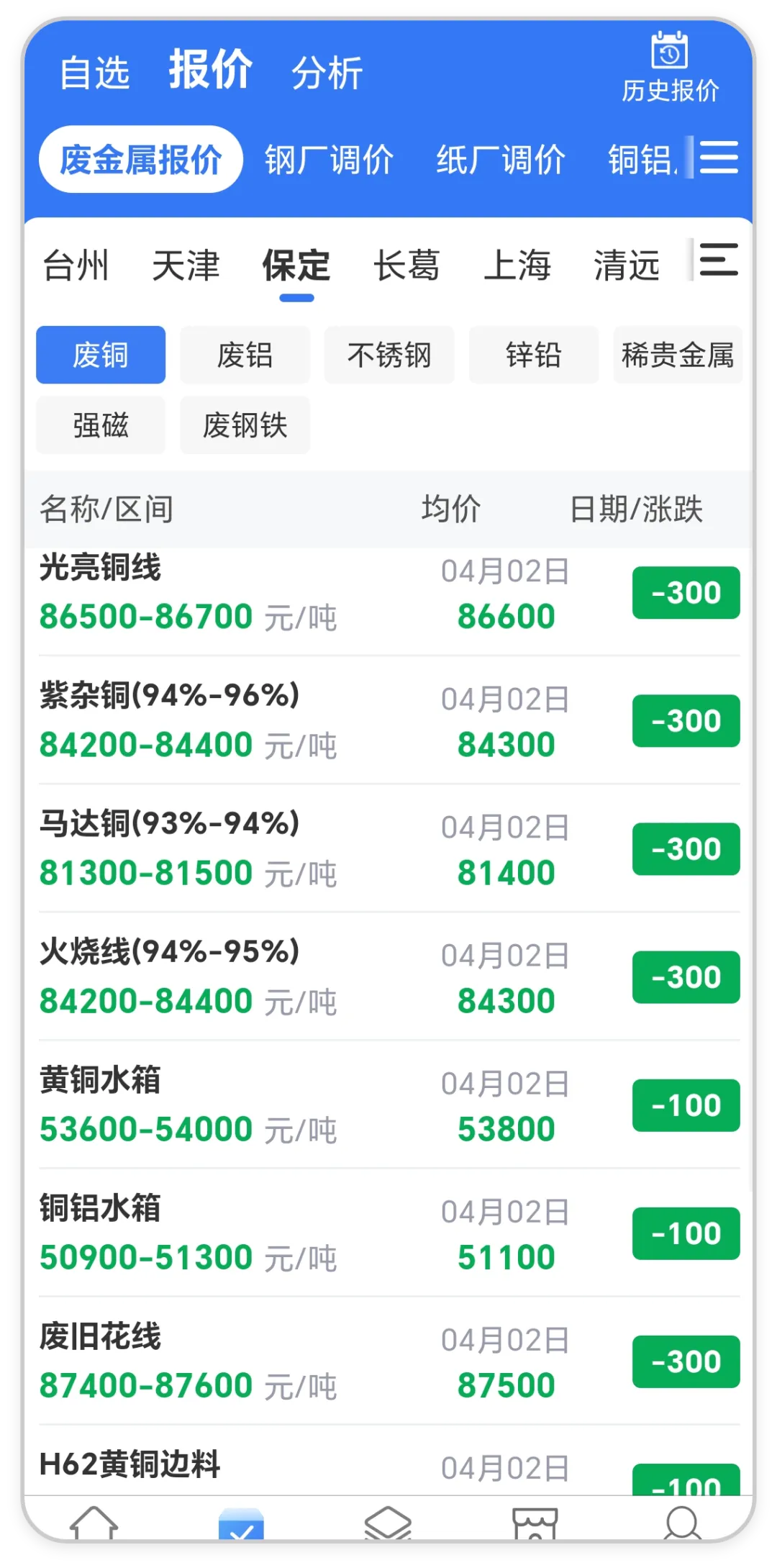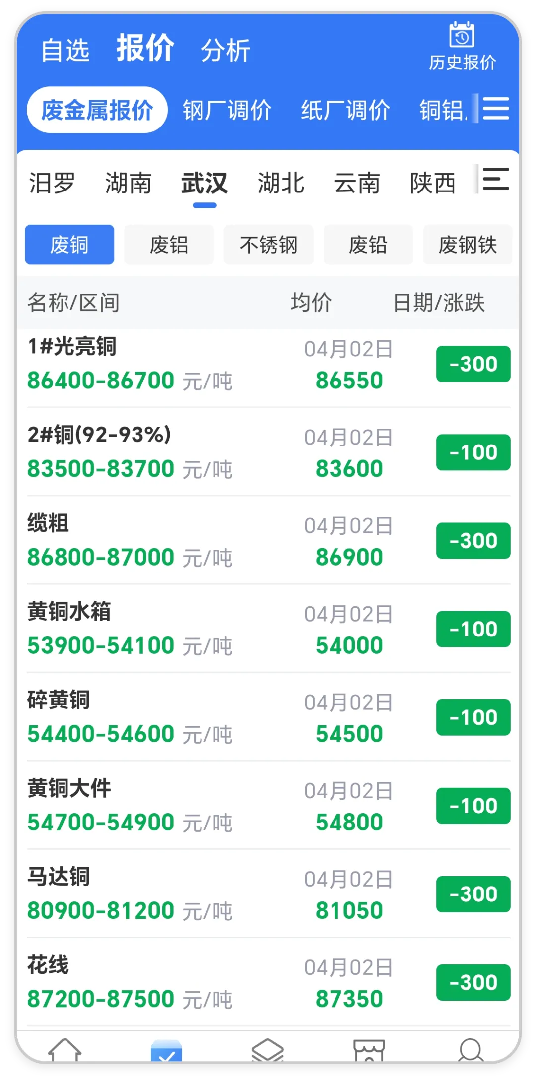 >废铜中幅下跌!全国废铜最新价格行情(4月2日)