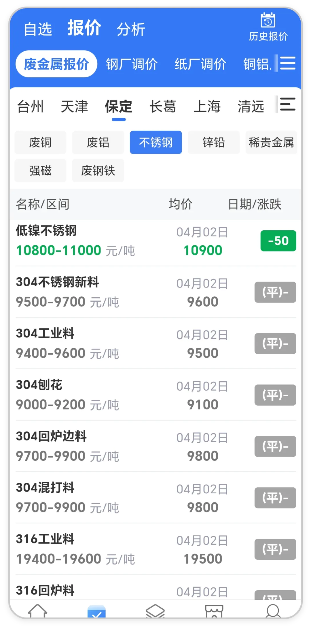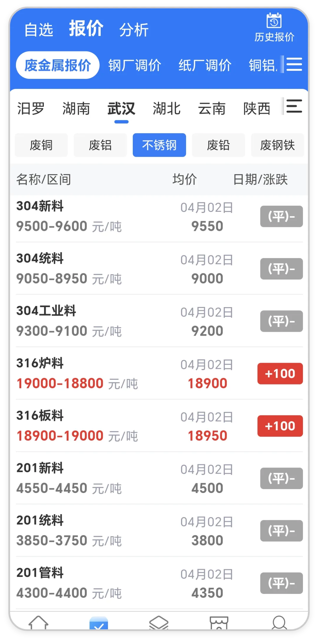 >废不锈钢失稳下探!全国废不锈钢最新价格行情(4月2日)