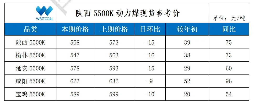 陕西方面,受前期价格回落及市场观望情绪影响,拉煤车辆依旧不多,部分煤矿为促进成交报价小幅松动。随着大秦线检修启动带来的后市供应收紧预期,部分优质煤种出货略有好转,矿方调价心态趋于谨慎,市场整体呈现弱势震荡、成交分化的格局。整体来看,今日煤矿调价幅度主要集中在10-25元/吨。